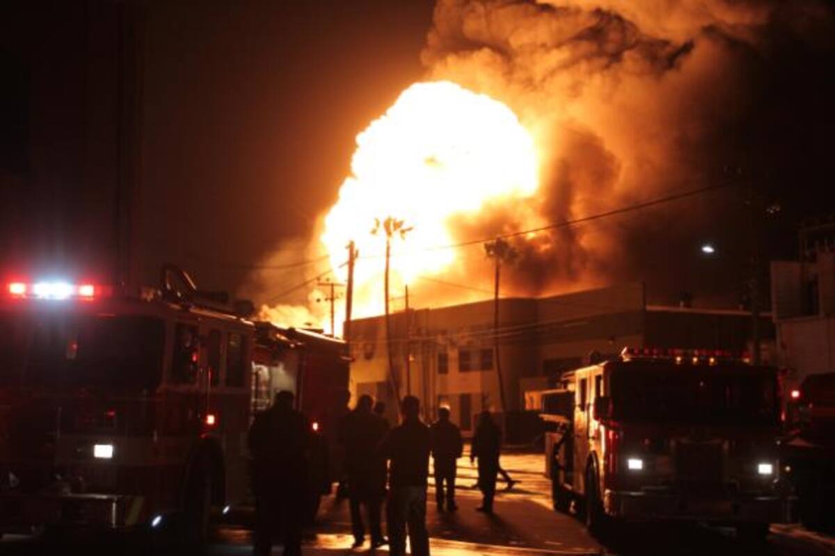 Después de varias horas de estar combatiendo el fuego que se registró en una bodega de Otay, los bomberos de Tijuana lograron sofocar el incendio, el cual se pudo ver desde varios kilómetros de distancia por las explosiones.