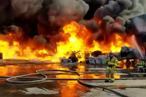 Bomberos atienden incendio en fábrica de la empresa B&B Plastics está ubicada en la delegación Otay-Centenario, en Tijuana