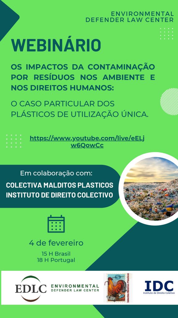 La Colectiva Malditos Plásticos, en colaboración con el Centro Legal de Defensores del Medio Ambiente (Environmental Defender Law Center/EDLC) y el Insituto de Derecho Colectivo de Brasil, les invitamos a participar en el webinar