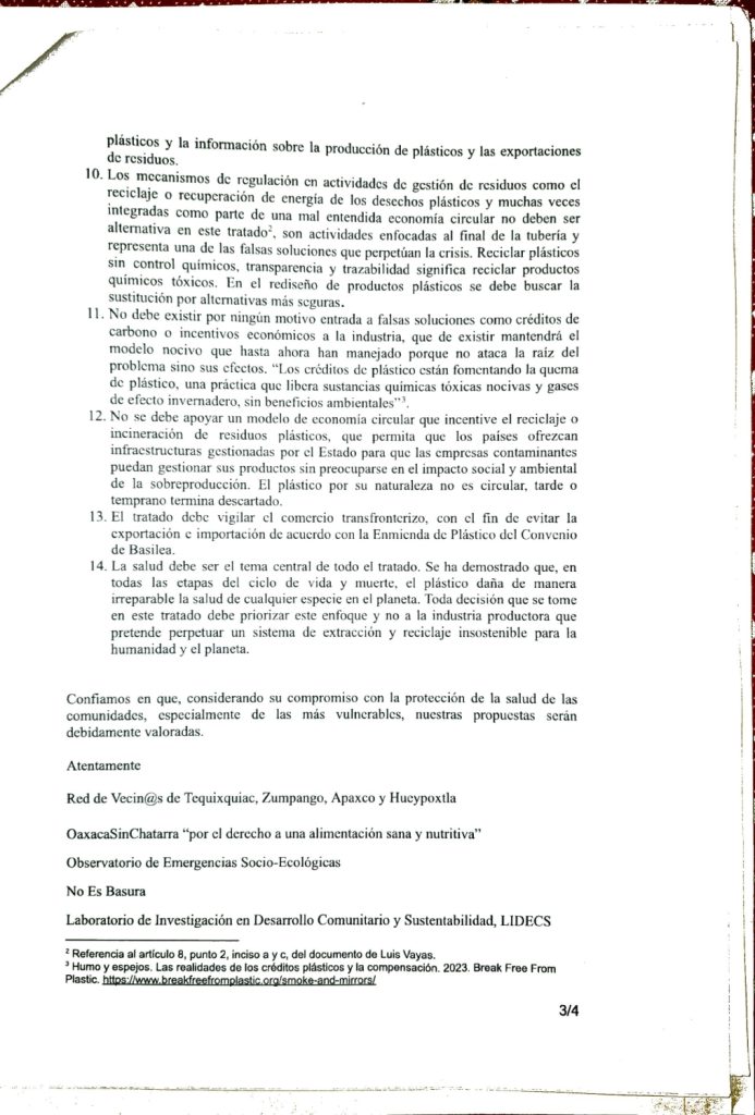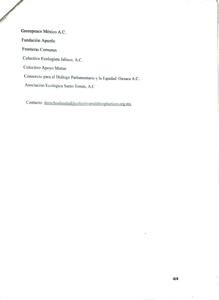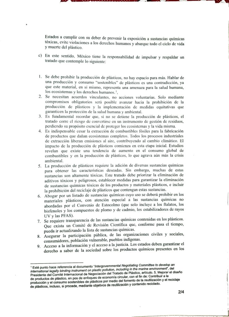 Organizaciones entregan comunicado ante SEMARNAT Y SRE para subrayar la importancia de incluir en la postura país los derechos y criterios mínimos en las negociaciones del Tratado Internacional de Plásticos