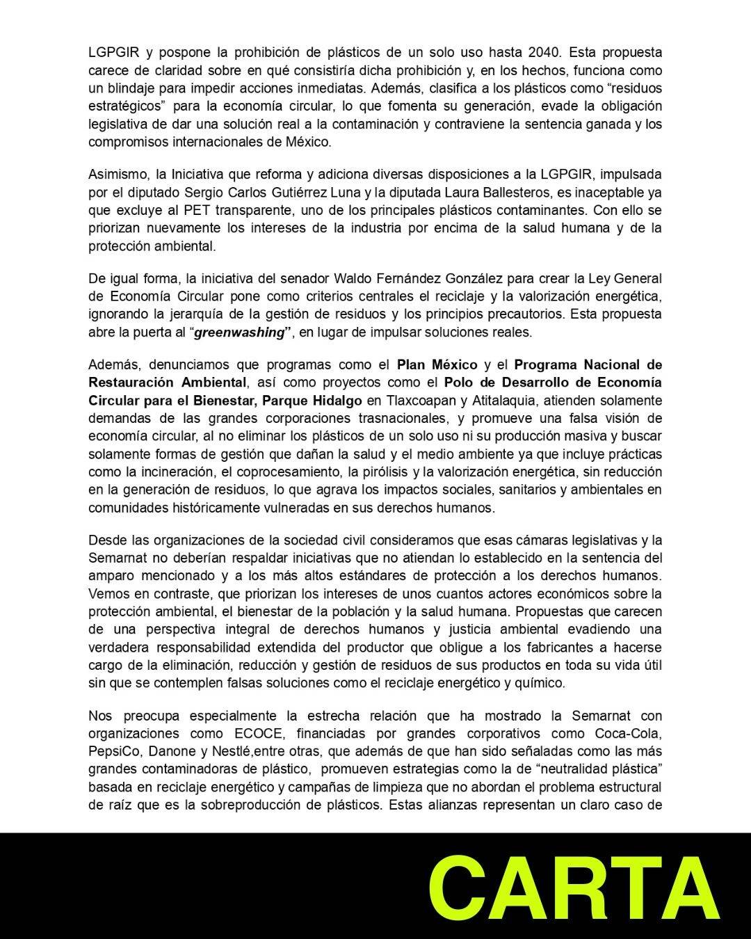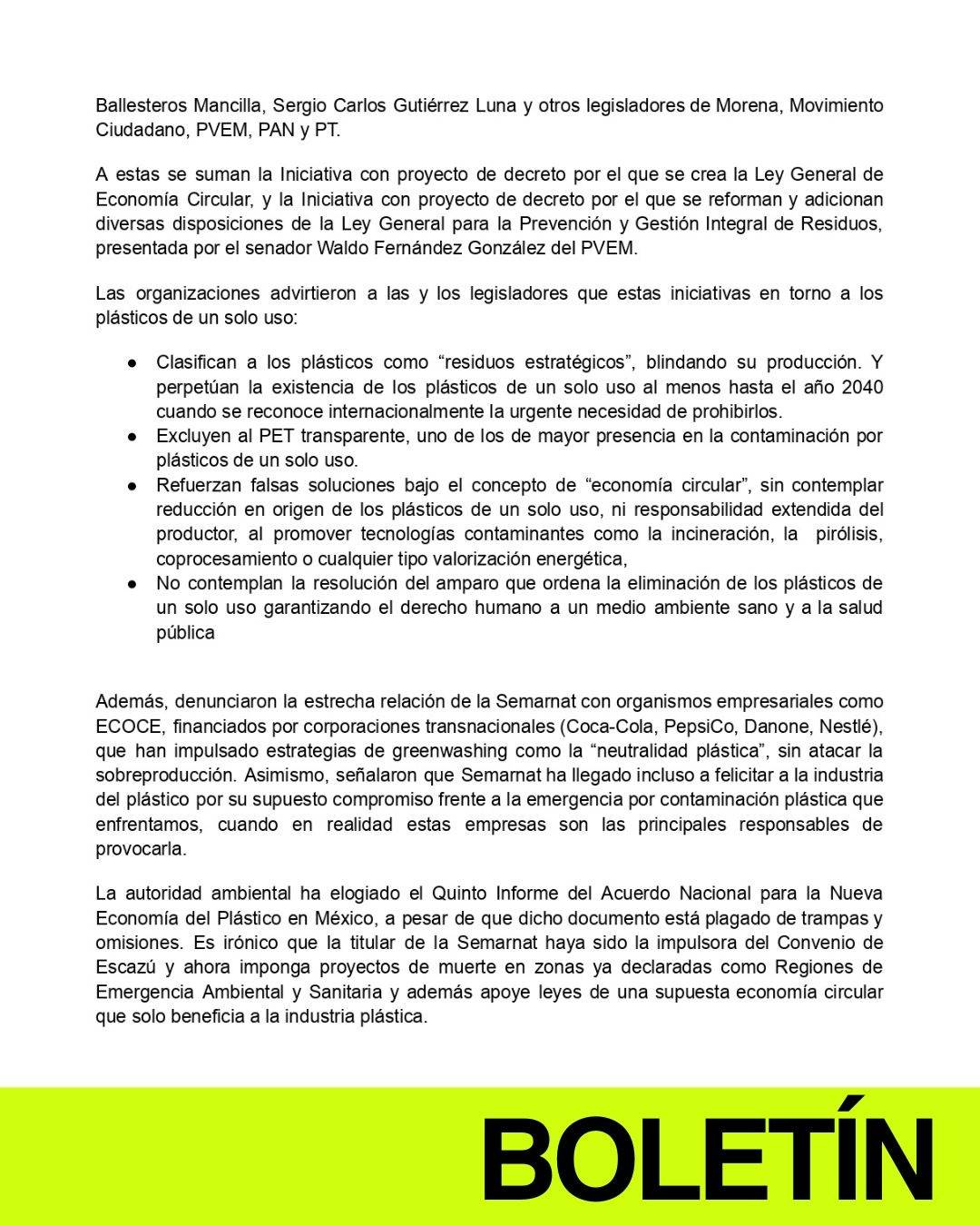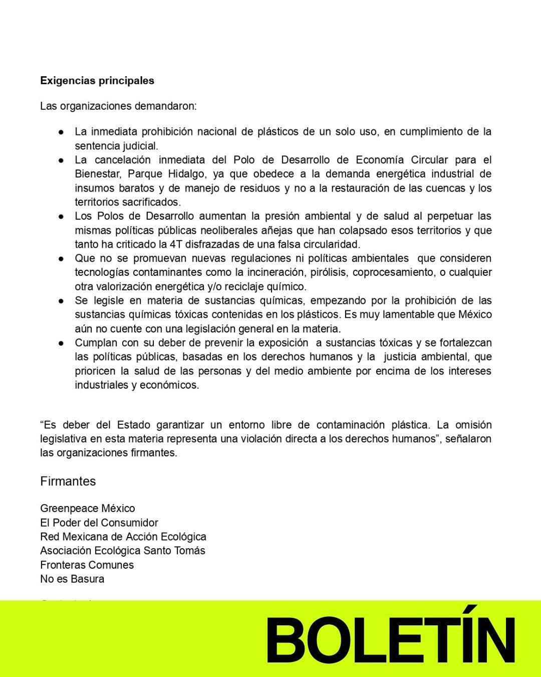 Organizaciones civiles exigen al congreso de la Unión cumplir la sentencia judicial que ordena prohibir plásticos de un solo uso y a SEMARNAT evitar conflictos de interés.